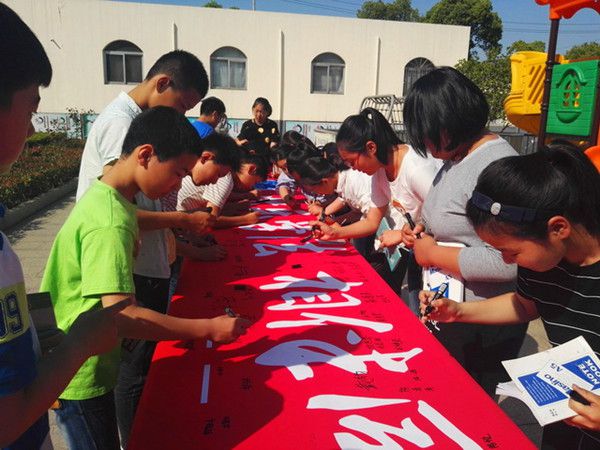 活动伊始,泰兴市人民检察院顾检察官为同学们做了“防欺凌”法制讲座。他用一个个鲜活的事例,讲述了校园欺凌和暴力的危害性,告诫同学们要互帮互助,不能以大欺小,否则就会触犯国家法律法规。他同时提醒同学们,遇到校园欺凌不要害怕,要及时告诉老师和家长,求得他们的帮助。随后,同学们参观了“防欺凌”展板,并在“反欺凌”横幅上签名。
