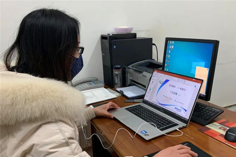 初三数学老师王恒君正在录制线上教学内容。她说:“学生线上学习对专注力的要求比较高,必须想办法把学生的兴趣调动起来,并利用答疑时间进行提问或布置相关作业,巩固讲课内容,确保教学质量。”
