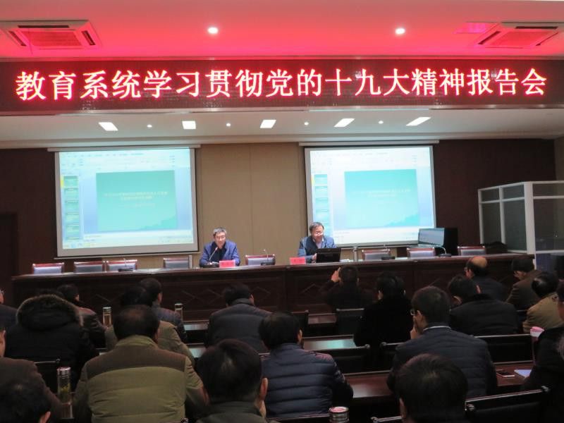 12月25日下午,全市教育系统学习贯彻党的十九大精神报告会在教师发展中心举行。活动邀请市委十九大精神宣讲团成员、市委党校常务副校长王翔作了题为《学习习近平新时代中国特色社会主义思想,全面建设现代化强国》的报告。全市中小学校长和幼儿园园长、市委教育工委老干部总支的党员同志、市局机关工作人员近300人参加了活动。 王翔从深刻领会大会的主题、五年来发生的历史性变革、中国特色社会主义进入新阶段、新时代社会主要矛盾的转变、习近平新时代中国特色社会主义思想、新时代中国特色社会主义的新目标和战略安排以及新时代党的建设总要求等方面,为与会人员全面解读了党的十九大精神的重要意义和丰富内涵。 市委教育工委副书记季文才主持会议时强调,全市广大教育工作者要以报告会为契机,更加全面、更加深入地学习贯彻党的十九大精神,努力在学深悟透上下功夫、在营造氛围上下功夫、在贯彻落实上下功夫,将学习贯彻党的十九大精神与学校工作有机结合,真正做到党员干部带好头、师生员工全覆盖、学习方式有创新,把学习贯彻的过程变成提升思想境界、拓展发展思路、创新工作举措的过程,为不断开创“现代化、高质量、有品位”的泰兴教育新局面作出新贡献。 |