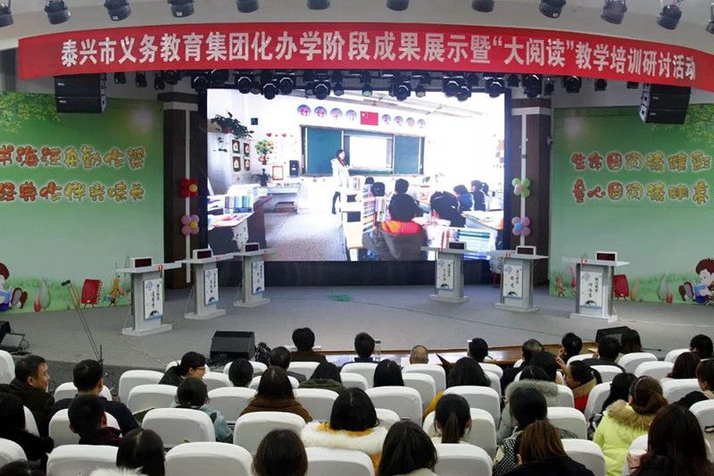 在襟江校区报告厅,与会人员聆听了“中国教育报2015年度推动读书十大人物”冷玉斌的大阅读教学讲座。冷玉斌结合自己多年的阅读教学实践告诉老师们,要学会做自己的阅读导师,通过必要的经典修习、打破专业的越读、明确持久的专题、知行合一的追求,做一个不普通的读者。作为老师,要指导学生阅读文学作品,学会从文学作品中汲取文字,通过大声朗读、好书推介、阅读指引、整本书阅读、提供发表平台等途径增加文章的积累,从而做学生的文学导师,提高学生的文学修养。与会人员观看襟江小学教育集团制作的专题片《在融合中前行……》,该片从改善办学设施、创新管理模式、加强人员流通、建立教研共同体、优化考评制度等五个方面介绍襟江小学教育集团集团化办学的举措以及取得的成效。专题片结束后,与会人员观看了集团各成员校呈现的“最美书香润童心”大阅读主题展演。